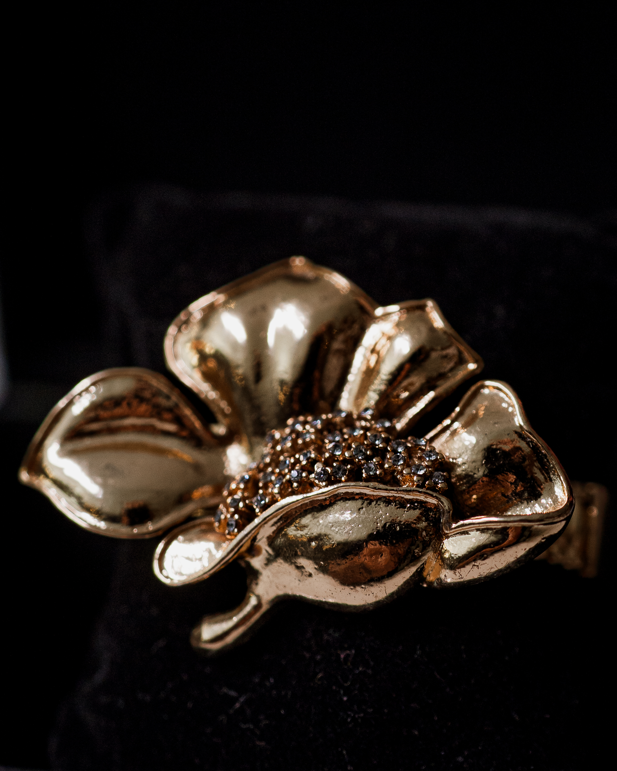 O Bracelete Flor Dourada é uma peça marcante que transforma qualquer look em pura sofisticação. Com pétalas esculturais em banho dourado e miolo cravejado em micro cristais, ele une romantismo e imponência em um design único.